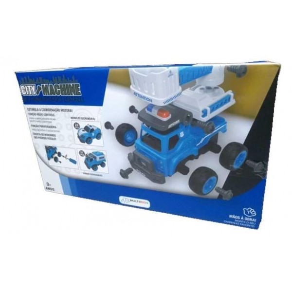 Mãos à obra, monte seu carrinho preferido com City Machine da Multikids! Monte e desmonte seu carrinho com parafusadeira e chave de fenda! Fácil de montar e desmontar, possui função de rádio controle, parafusadeira manual e elétrica para a brincadeira ficar muito mais divertida. A parafusadeira possui 2 botões, um para movimentar para frente e outro para movimentar para trás. Utiliza 3 pilhas AG13 inclusas para o veículo, 2 pilhas AA não inclusas para a parafusadeira e 2 pilhas AA não inclusas para a função rádio controle.