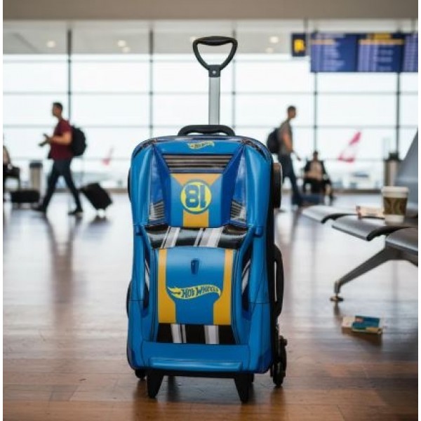 Mochila escolar de rodinha tripla 3D HotWheels azul Diplomata