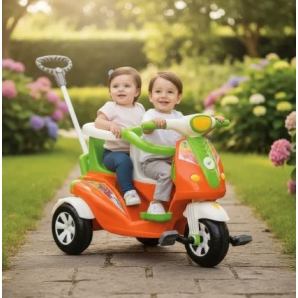 A Moto Duo possui cores divertidas para o passeio com o irmãozinho.
